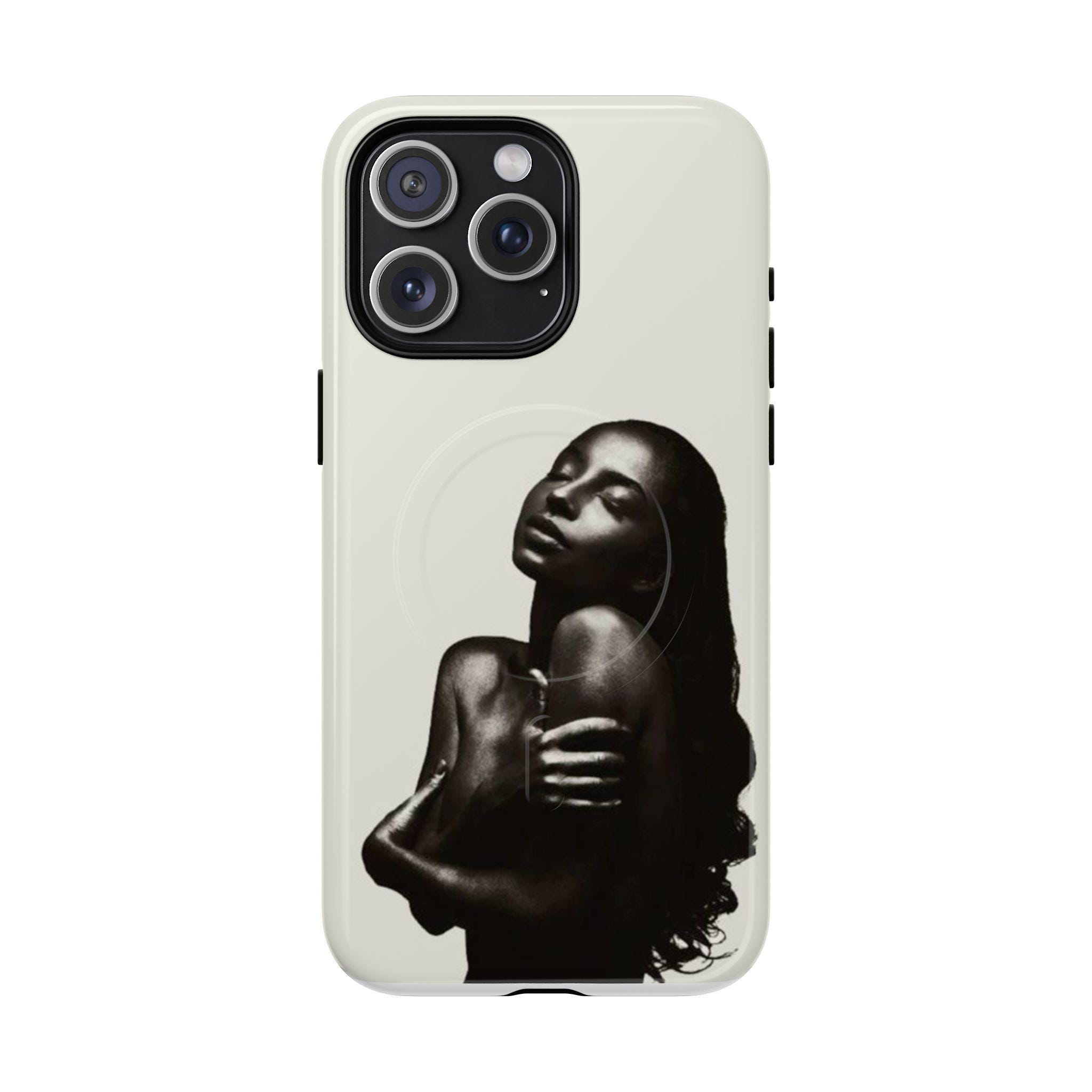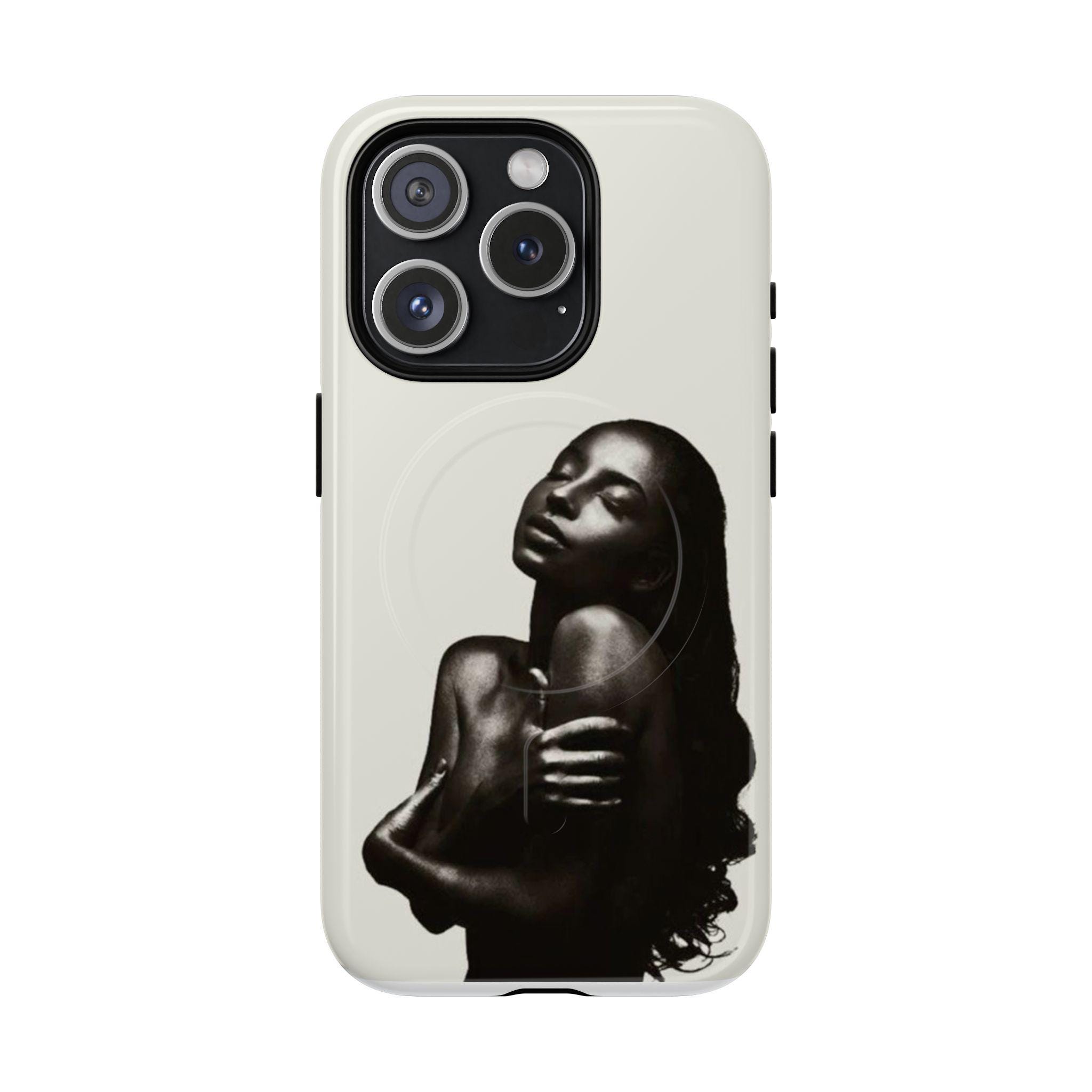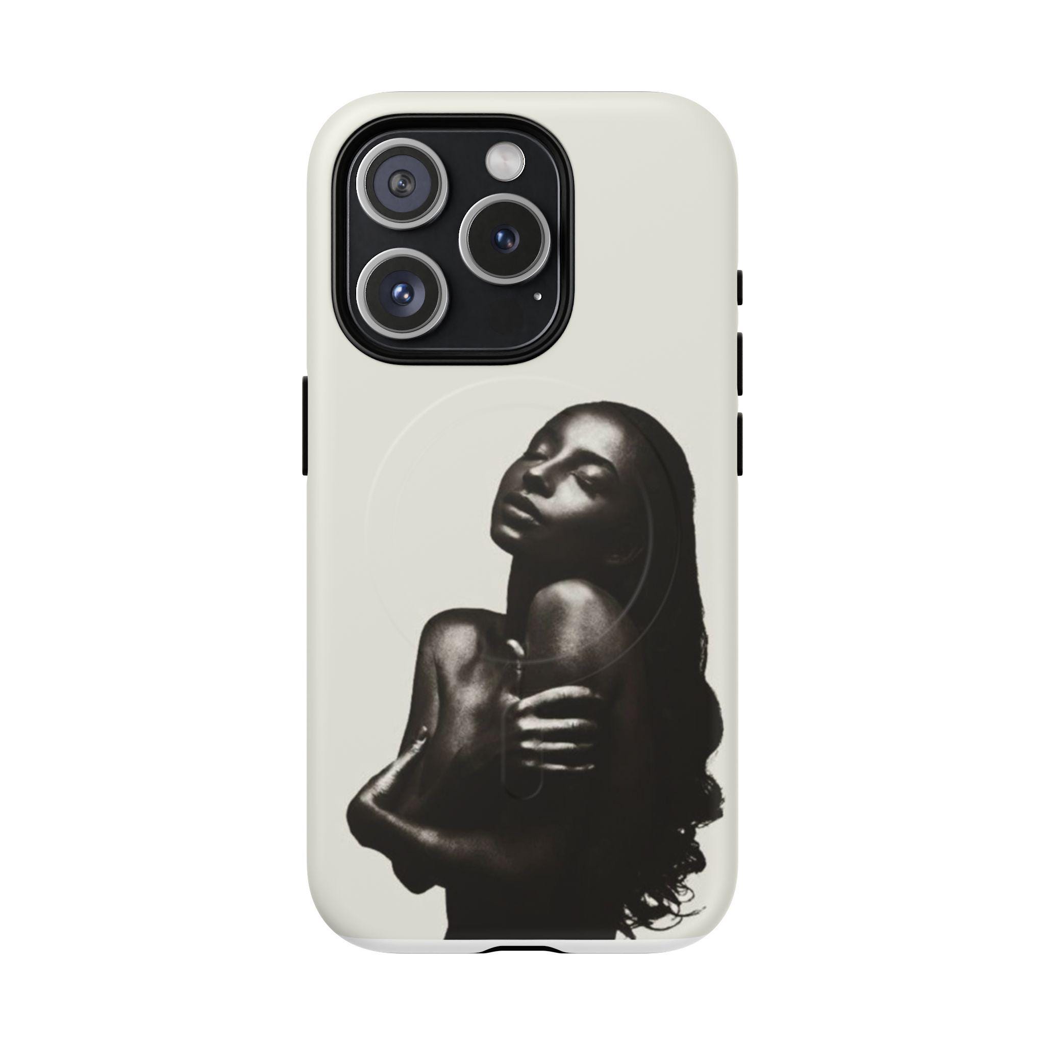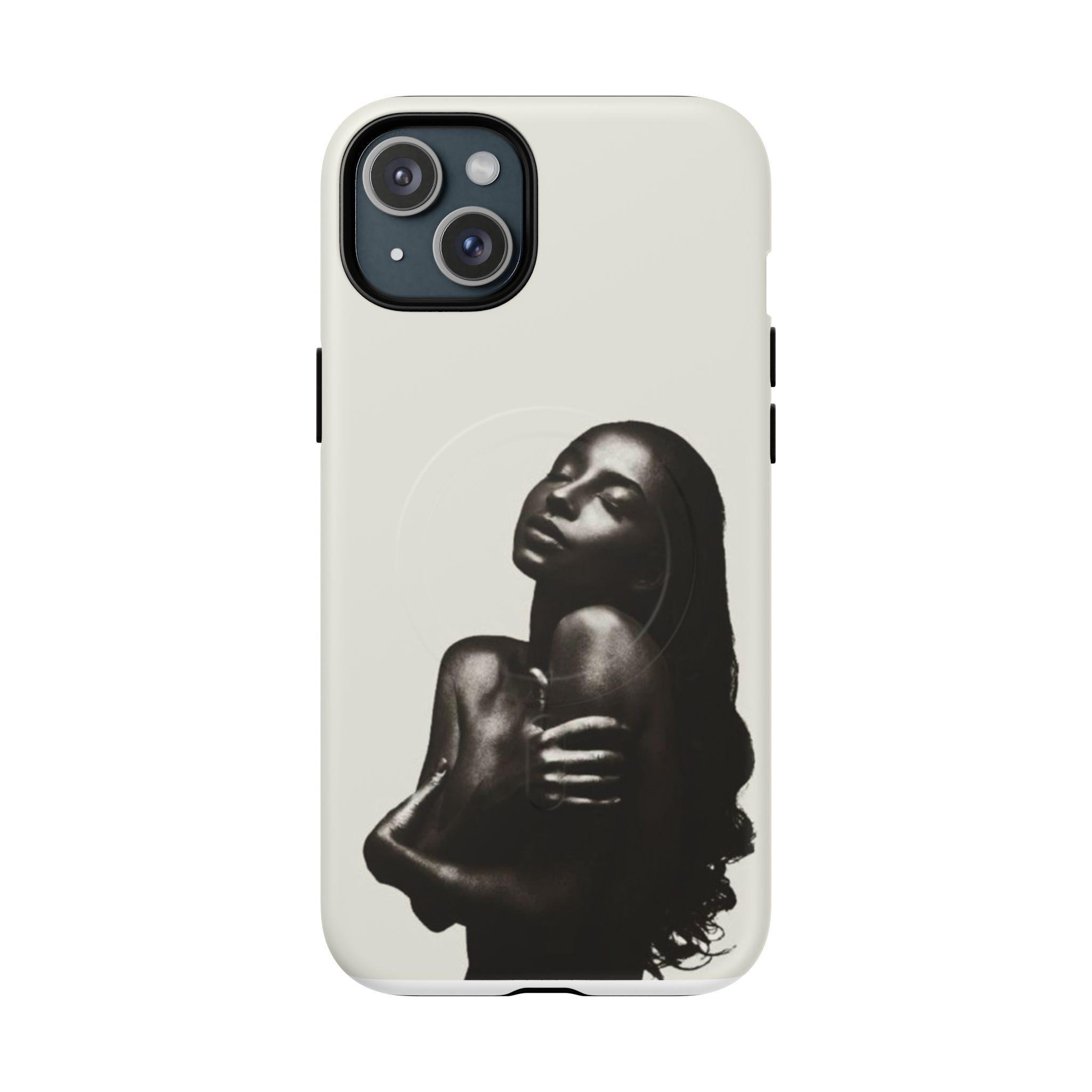 This slim, dual-layer phone case wraps your device in quiet confidence. A soft-touch silicone liner cushions every drop while the rigid polycarbonate shell shows off a monochrome portrait that reads like a moment captured in film — luminous highlights, deep shadows, and an intimate pose that draws the eye. The embedded magnetic module is MagSafe® compatible so the case works with chargers and accessories without losing its sleek profile. Finished in your choice of glossy or matte, with clear ports and precise cutouts, it’s made to live in your hands and travel with you.