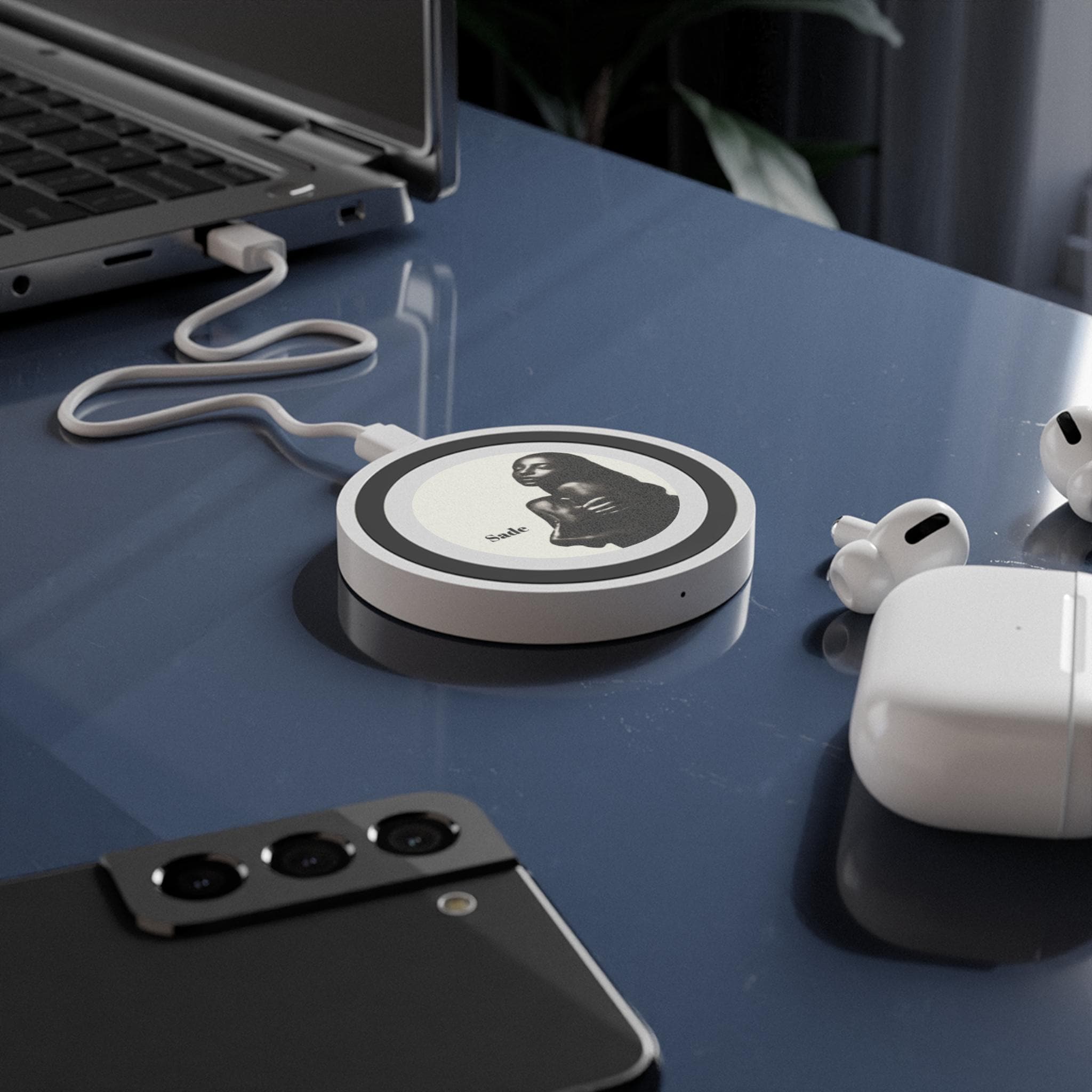 A sleek wireless charging pad designed with soulful, minimalist art to bring calm and style to your everyday tech. The slim, lightweight disk slips onto desks and nightstands without fuss, giving you a steady 5W charge through most plastic cases. The printed artwork uses vivid, crisp colors to preserve detail and mood — a quiet centerpiece that blends music-room elegance with modern convenience. Plug in the included 11.8" USB-to-Micro USB cable and set your phone down: the charge begins, and the room feels a touch more intentional.